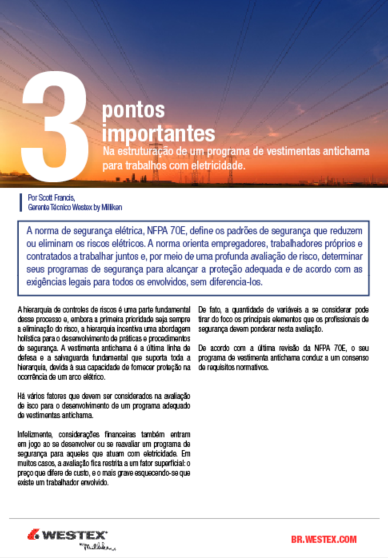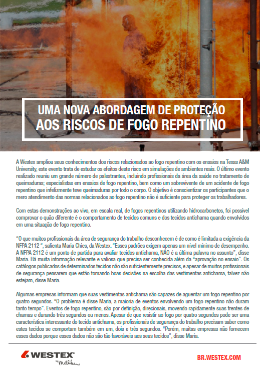 “O que muitos profissionais da área de segurança do trabalho desconhecem é de como é limitada a exigência da NFPA 2112 “, salienta Maria Chies, da Westex. “Esses padrões exigem apenas um nível mínimo de desempenho. A NFPA 2112 é um ponto de partida para avaliar tecidos antichama, NÃO é a última palavra no assunto”, […]