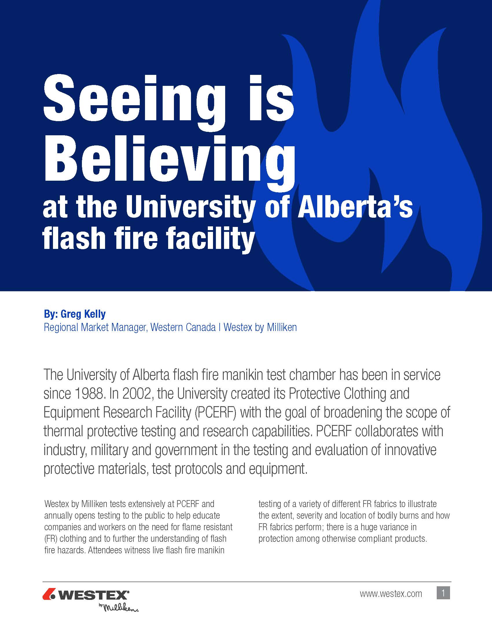 The University of Alberta flash fire manikin test chamber has been in service since 1988. In 2002, the University created its Protective Clothing and Equipment Research Facility (PCERF) with the goal of broadening the scope of thermal protective testing and research capabilities.